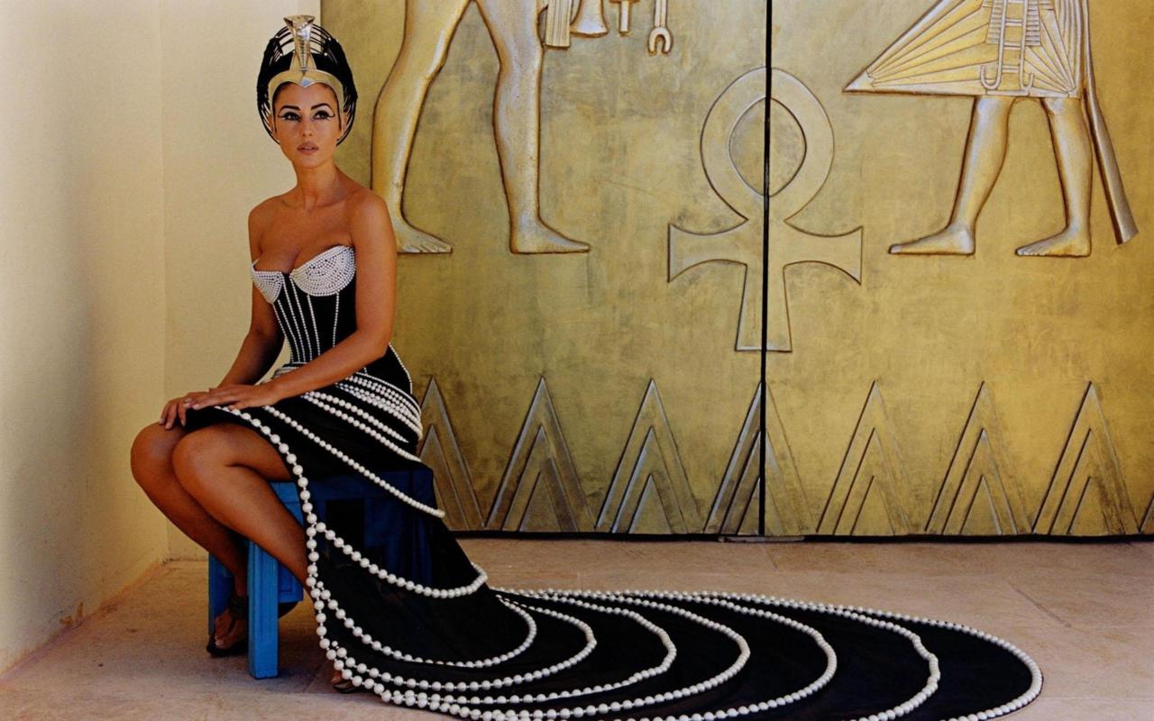 monica bellucci, italian, actress, model, brunette, sexy babe, cosplay, egyptian, cleopatra, pharaoh, personality, make up art, fancy robe, real celebs wall