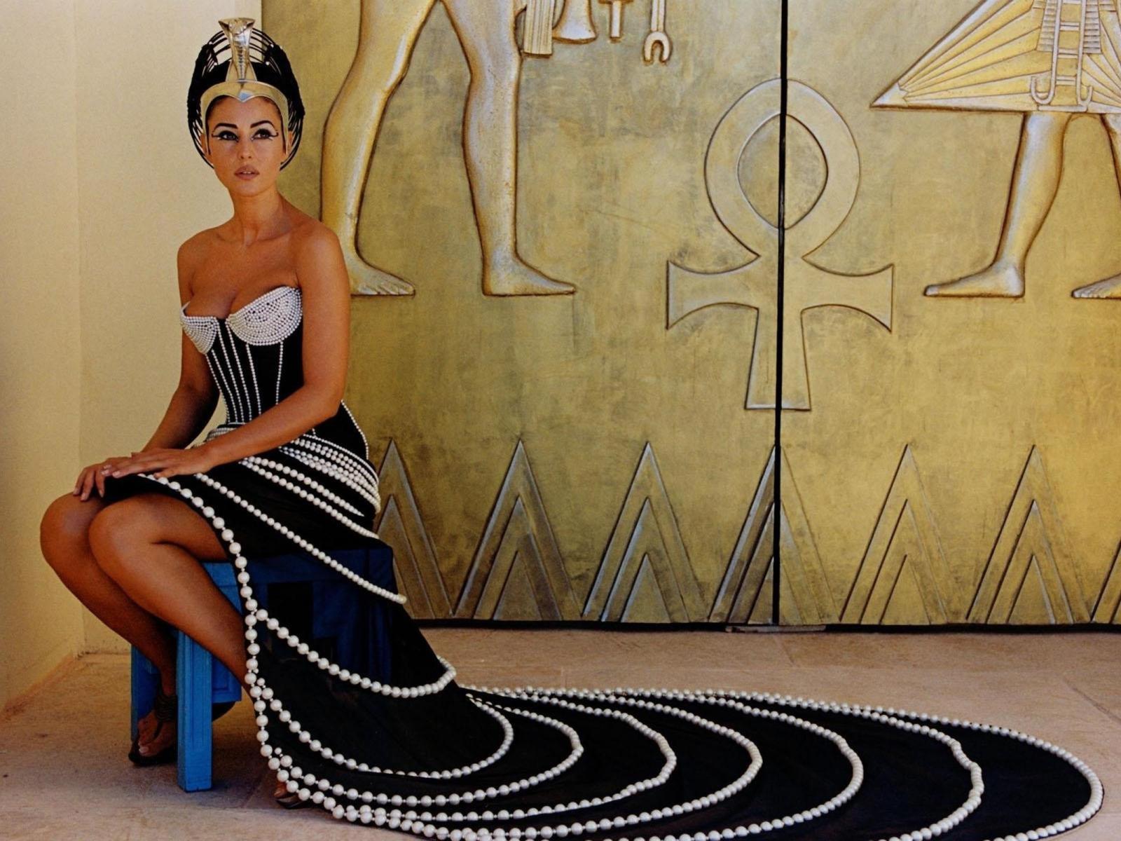 monica bellucci, italian, actress, model, brunette, sexy babe, cosplay, egyptian, cleopatra, pharaoh, personality, make up art, fancy robe, real celebs wall