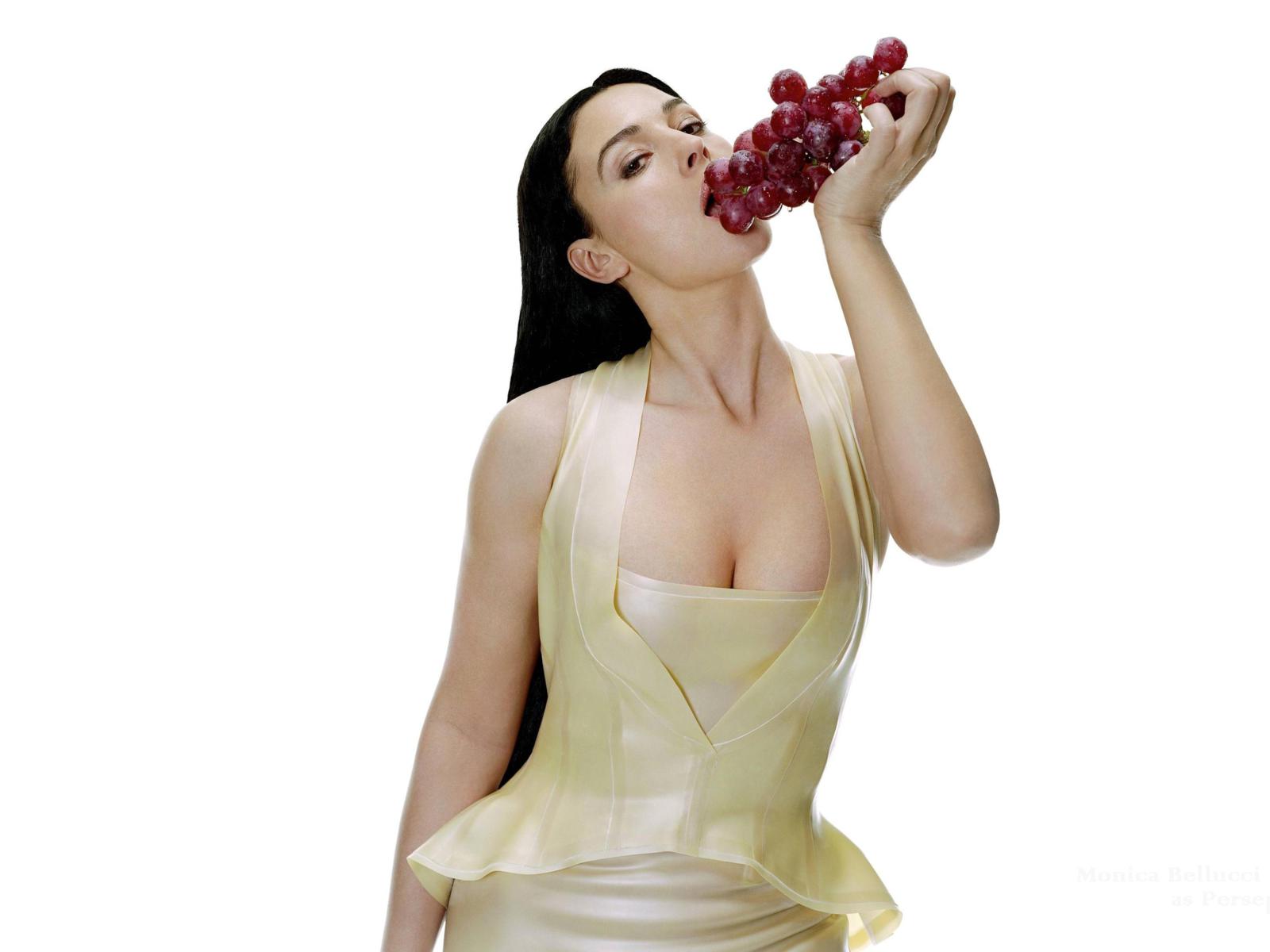 monica bellucci, italian, actress, model, brunette, sexy babe, photoshoot, persephone, matrix, personality, close up, fruits, grapes, decollete, minimalist wall, the matrix, shiny, rubber, fetish, latex, dress, fetish babe, real celebs wall