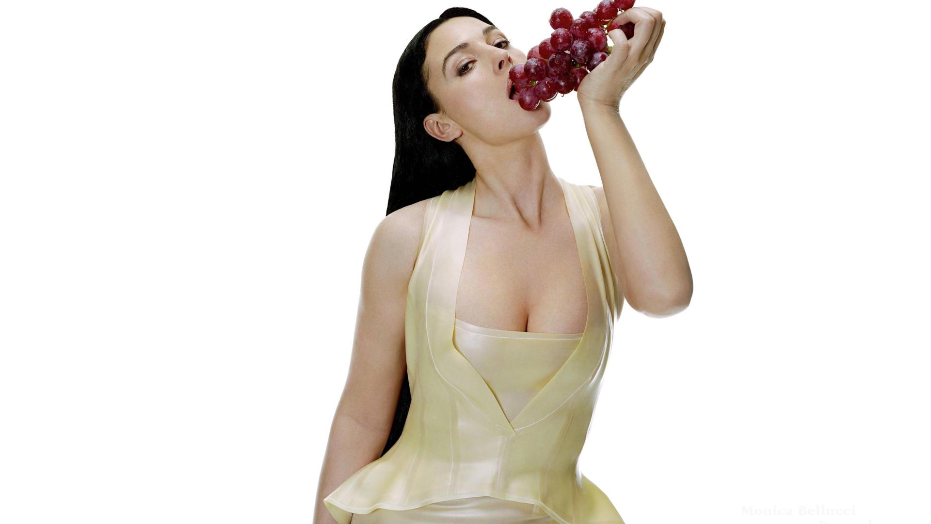 monica bellucci, italian, actress, model, brunette, sexy babe, photoshoot, persephone, matrix, personality, close up, fruits, grapes, decollete, minimalist wall, the matrix, shiny, rubber, fetish, latex, dress, fetish babe, real celebs wall