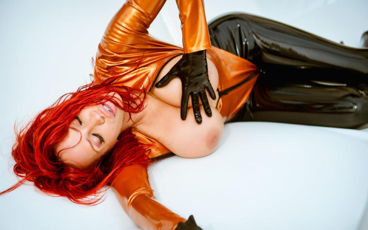 bianca beauchamp, canadian, model, redhead, sexy babe, fetishqueen, rubber, fetish, latex, shiny, black, gold, topless, big boobs, hooters, melons, erotic, bianca, gloves, glamour, fetish babe, super boobs, tight clothes