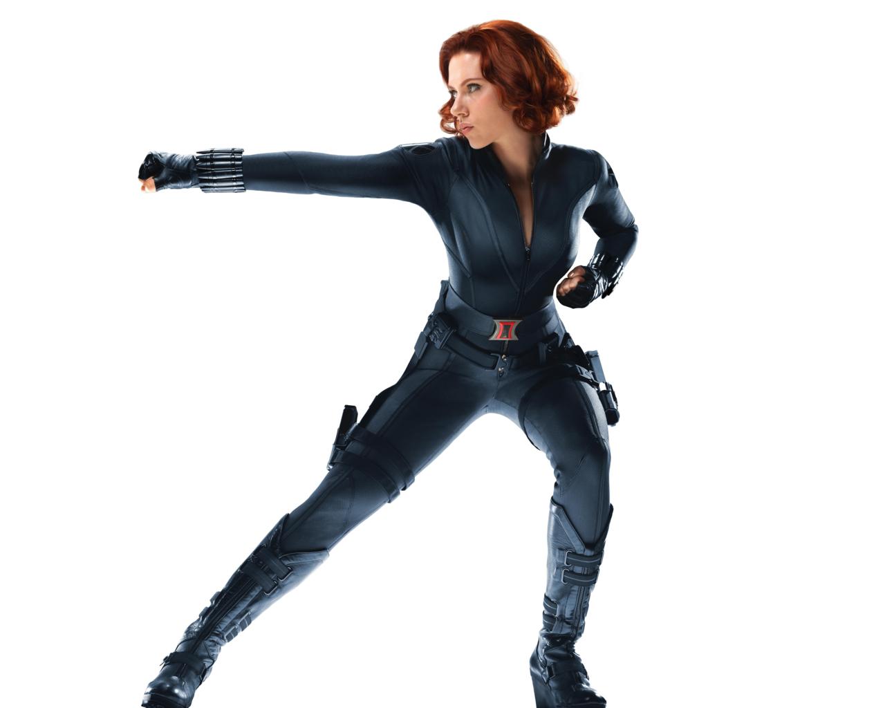 scarlett johansson, redhead, actress, sexy babe, hollywood, black, catsuit, leather, boots, gloves, black widow, movie, character, personality, scarlett, the avengers, natasha romanoff, hi-q, best quality, real celebs wall, tight clothes