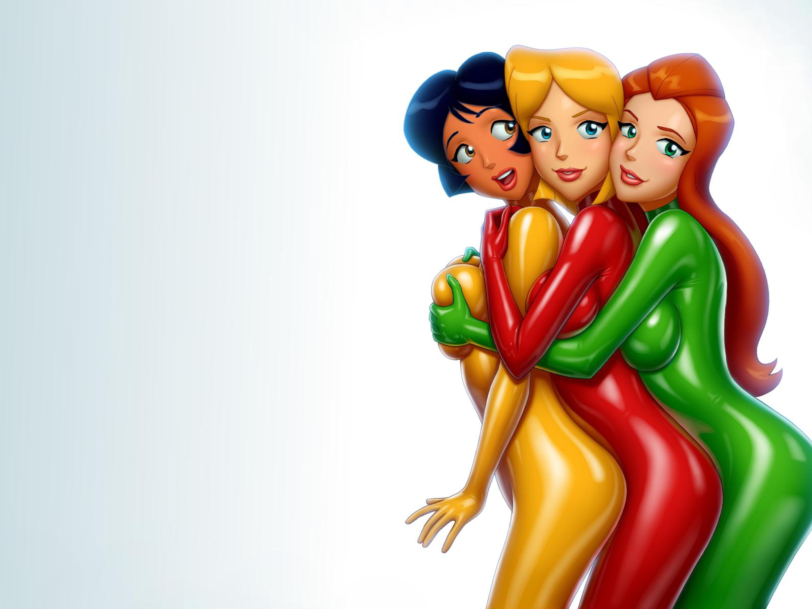 3 babes, blonde, brunette, readhead, 3d, artwork, sexy babe, three, virtual, fetish, babes, green, red, yellow, latex, posing, sandwich, drew gardner, totally spies, hi-q, fetish babe, 3d latex
