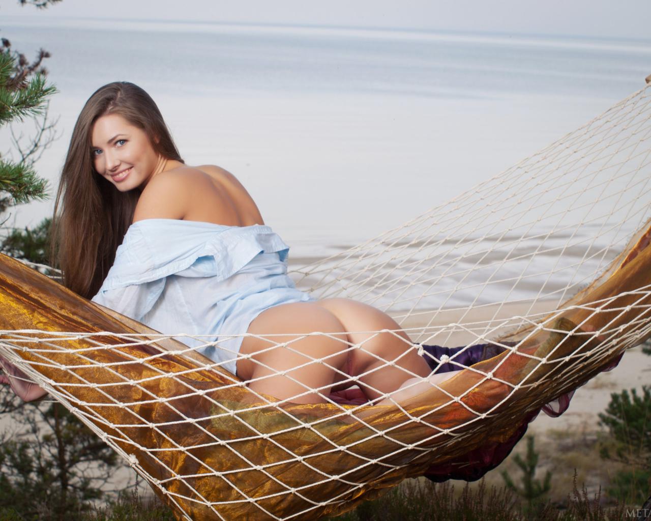 brunette, outdoor, hammock, met-art, smile, solo, boobs, tiny nipples, legs, elizabeth a, pussy, shaved, sexy, ass wallpaper