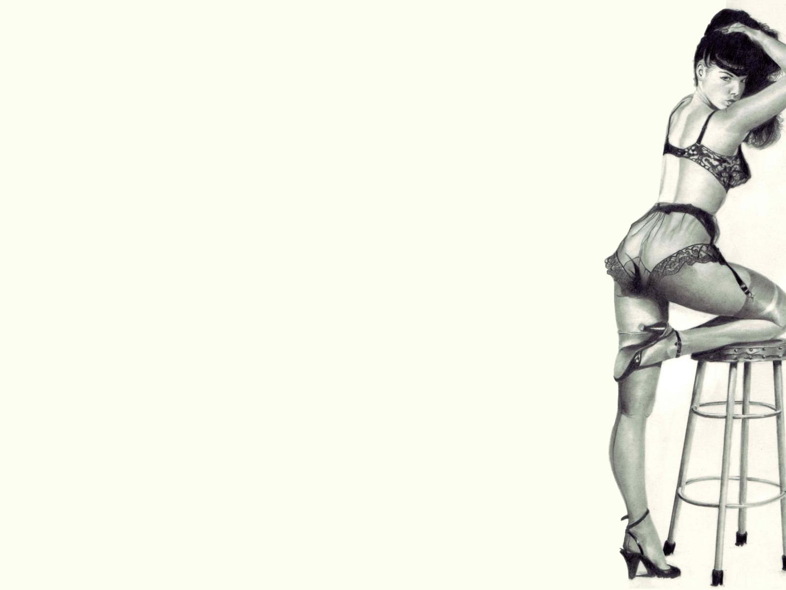 bettie page, betty, bettie, betty page, sexy babe, erotic, retro, bikini, heels, artwork, drawn, black hair, smile, lingerie, stockings, high heels, ass, vintage