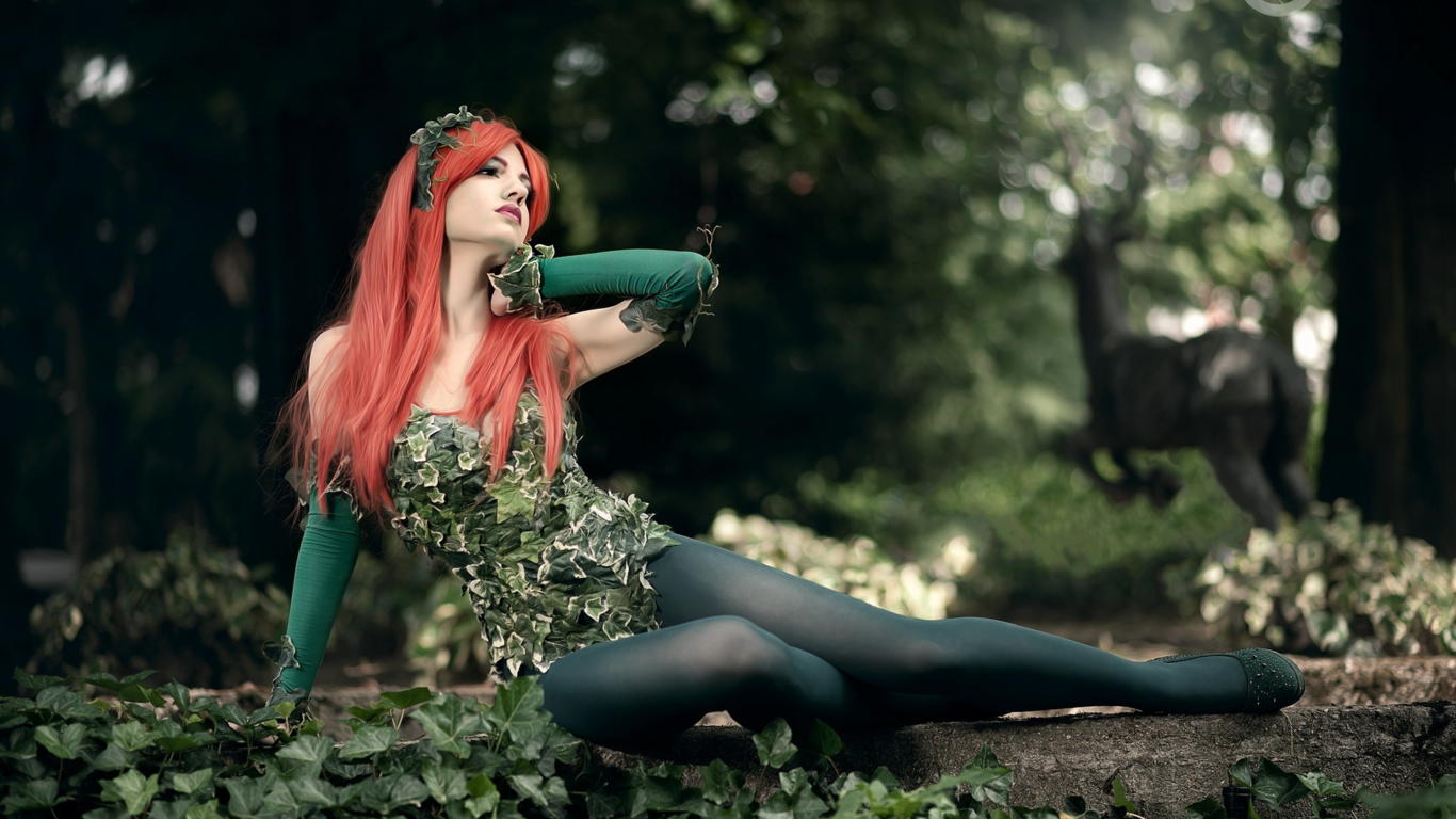 petite, cute, model, redhead, long hair, outdoor, skinny, delicious, sexy, perfect girl, nylon, collant, pantyhose, cosplay, poison ivy, rebecca
