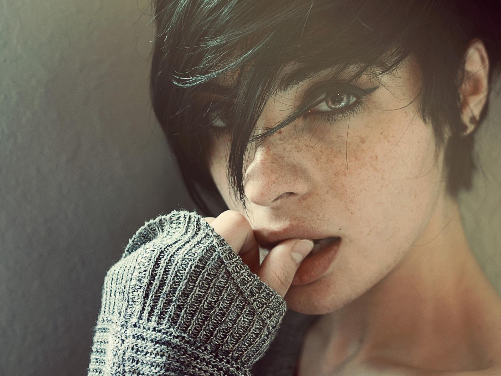 petite, cute, model, brunette, short hair, girl, face, freckles, skinny, delicious, sexy, nice lips, beautiful, high quality