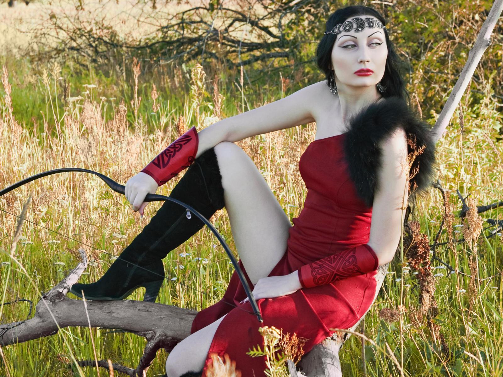 mervilina, brunette, russian, alternative, gothic, model, slim, sexy babe, long hair, pale skin, posing, outdoor, sexy dressed, cosplay, princess, jewelry, arrow, erotic art, red lips, fantasy