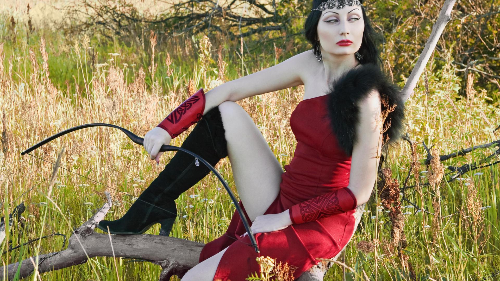 mervilina, brunette, russian, alternative, gothic, model, slim, sexy babe, long hair, pale skin, posing, outdoor, sexy dressed, cosplay, princess, jewelry, arrow, erotic art, red lips, fantasy