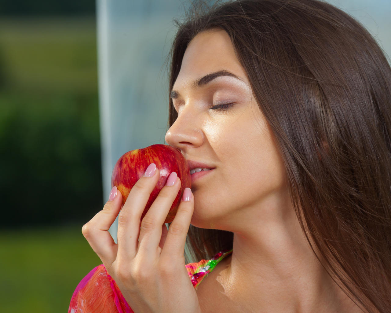 vanda b, brunette, sexy girl, adult model, apple, long hair