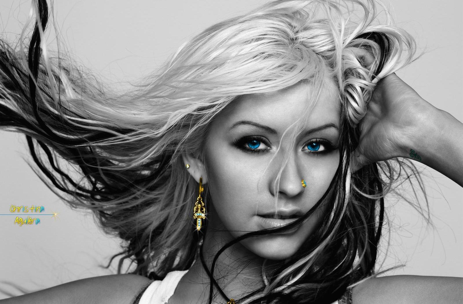 christina aguilera, singer, blonde, black & white, contrast, black and white