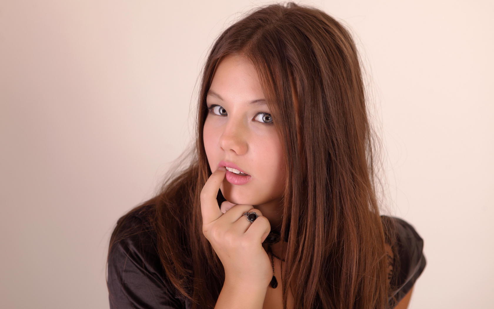 kleofia, brunette, sexy girl, young model, sweet, cute, lovely face, long hair, view, look
