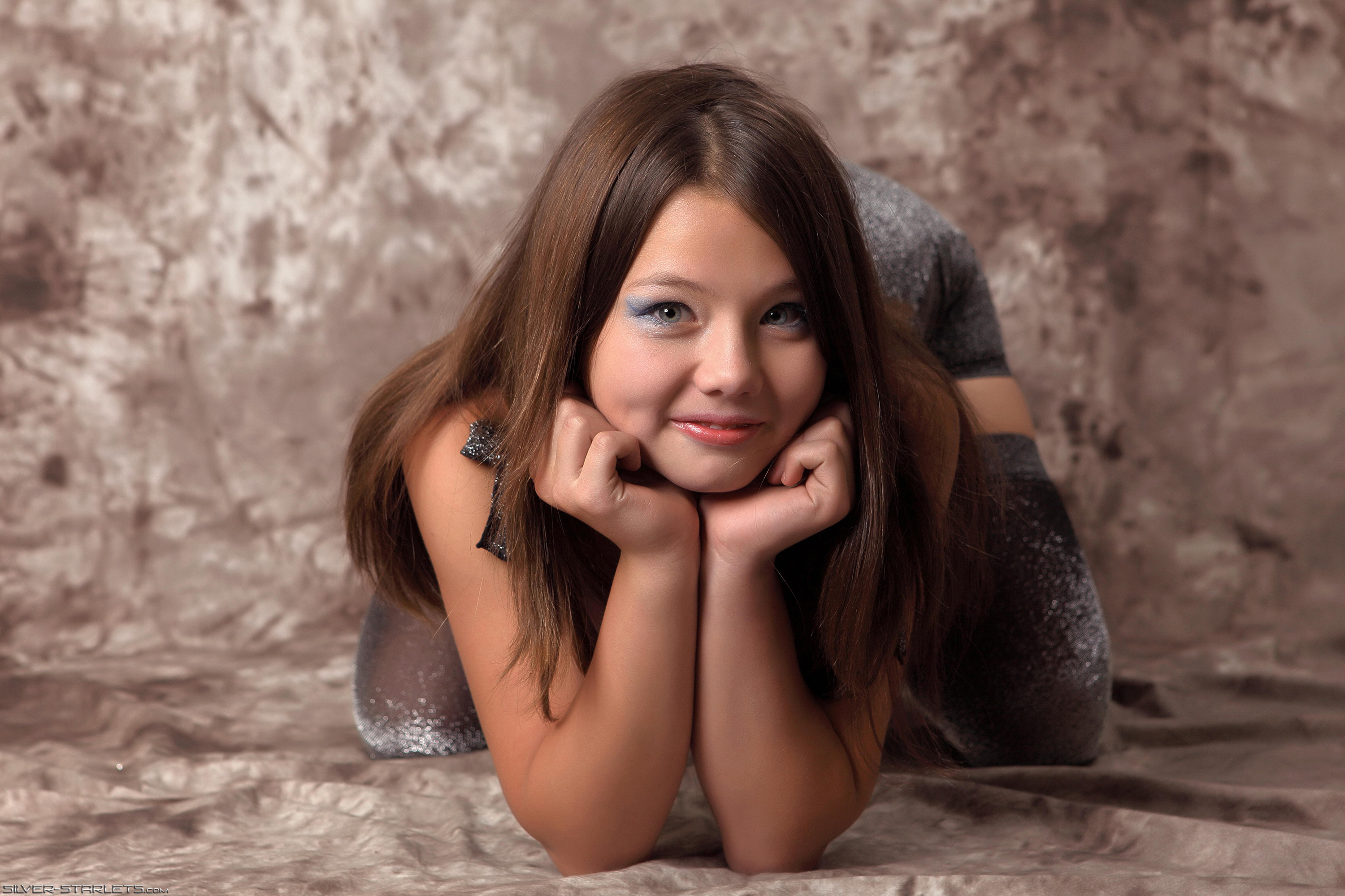 kleofia, brunette, sexy girl, young model, sweet, cute, kneeling, smile, long hair, view, look