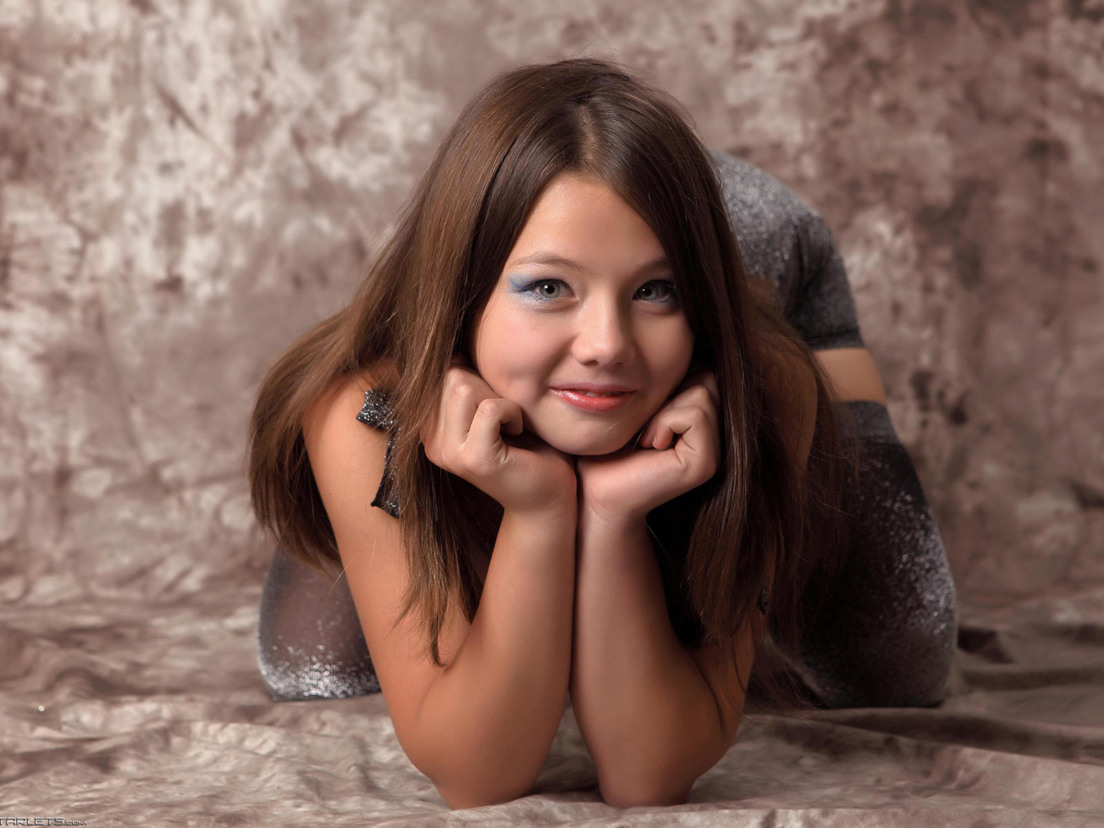 kleofia, brunette, sexy girl, young model, sweet, cute, kneeling, smile, long hair, view, look