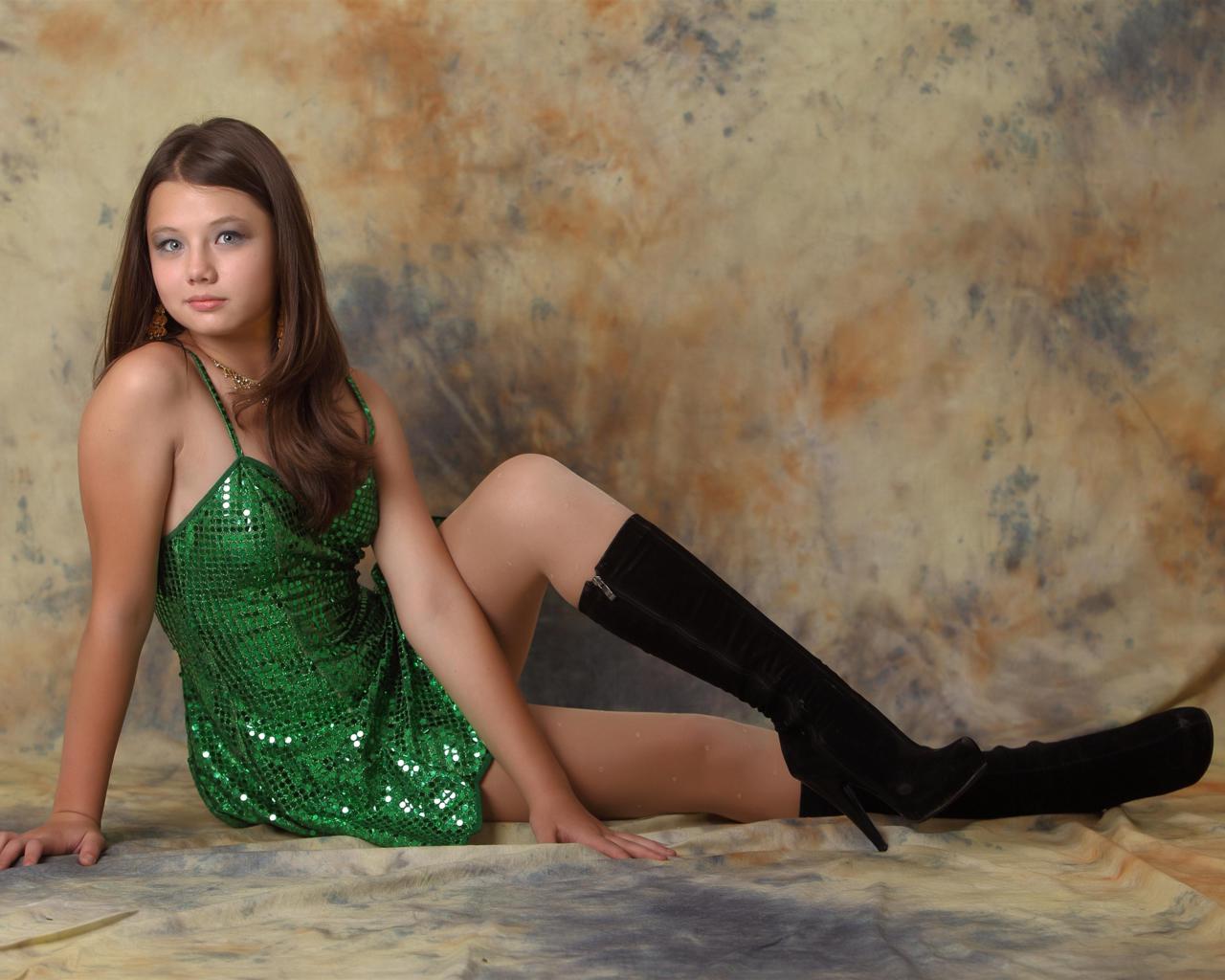 kleofia, brunette, sexy girl, young model, sweet, cute, green dress, boots, long hair, view, look