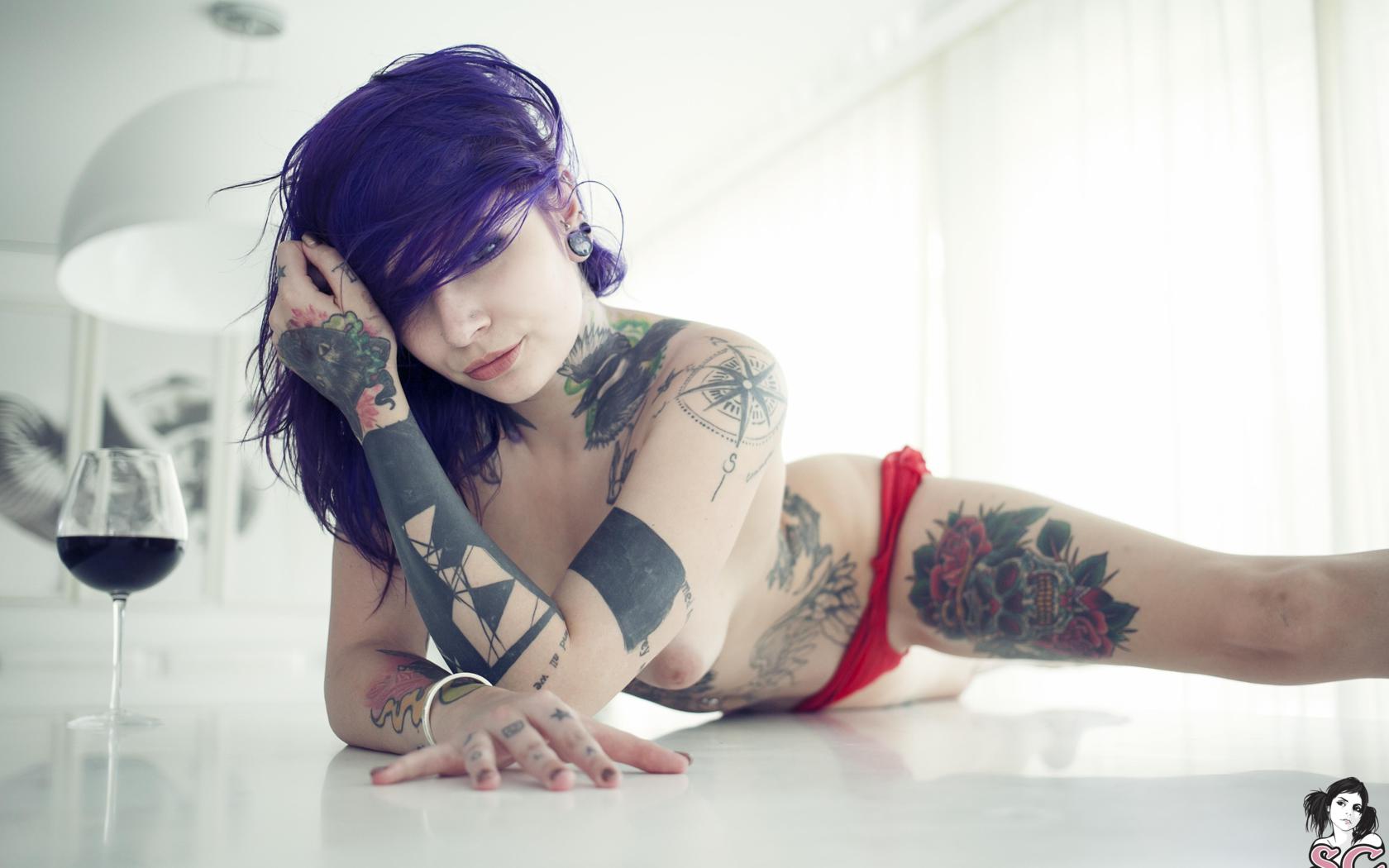 tattoo, brunette, nude, boobs, naked, short, legs, sexy, face, hair, beautiful, body, rebecca crow, katherine suicide, katherine, suicide girls, hi-q, close up, eyes, face, tattoos, body art