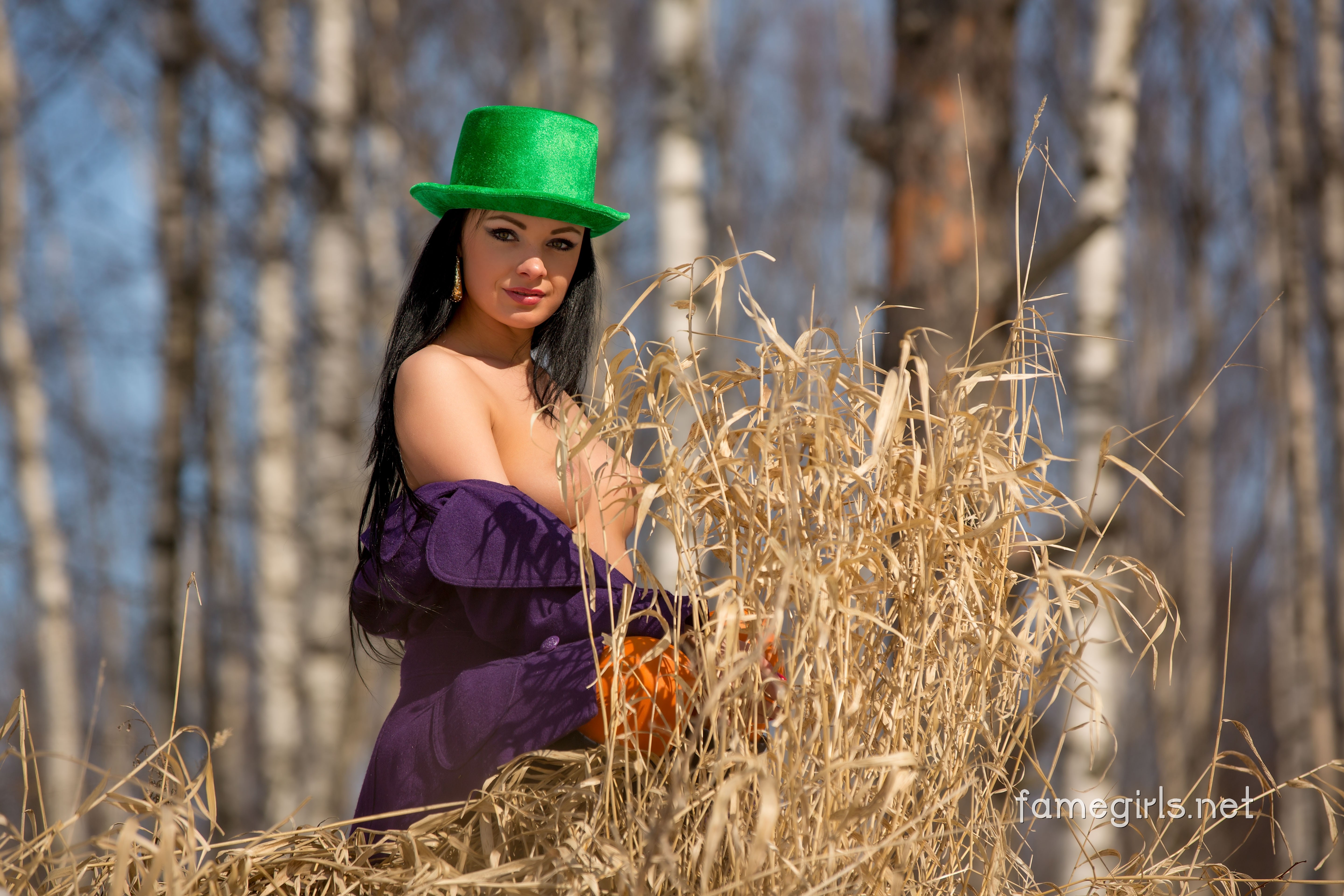 katie, brunette, sexy girl, adult model, :), beautiful, coat, hat, long hair, view, look