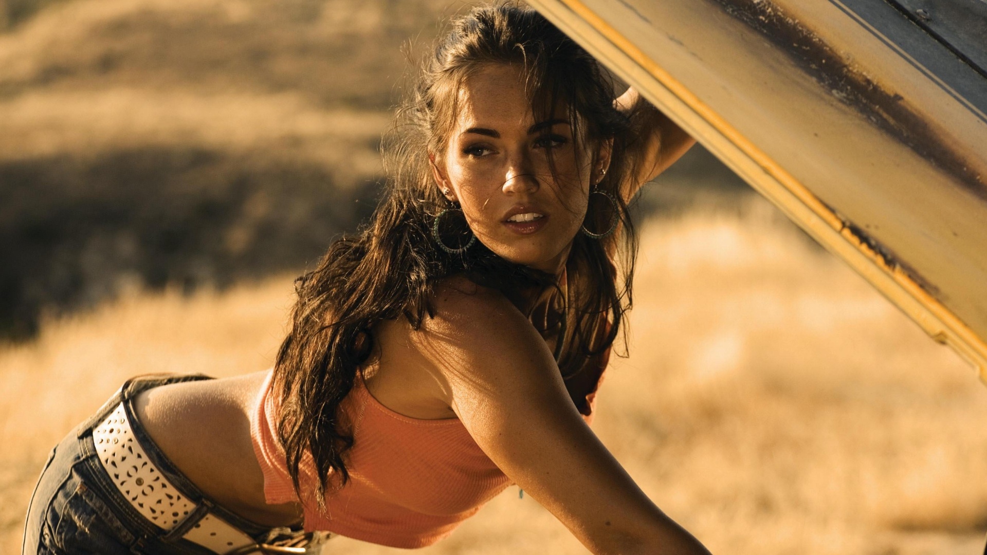 megan fox, actress, sexy, hot, jeans, brunette, car, long hair, outdoor, not nude