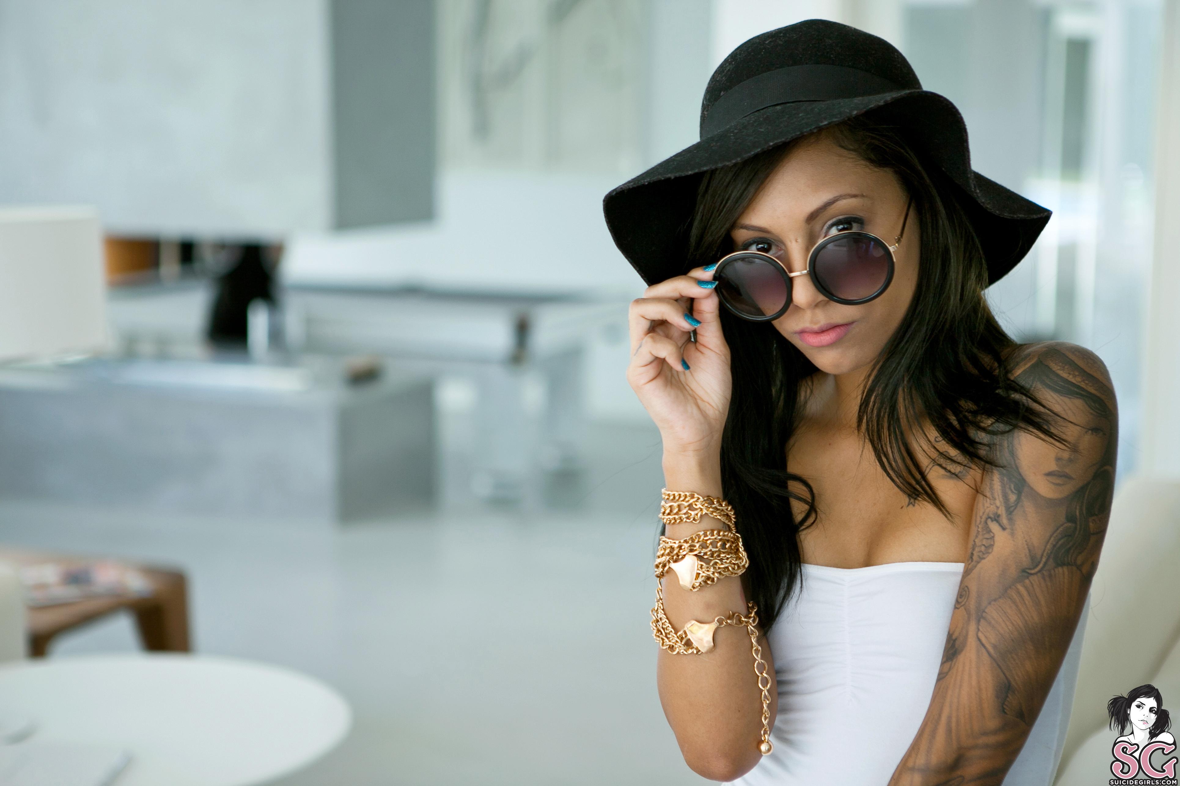 zad, suicide girl, model, sunglass, sexy, tattoo, brunette, beautiful, suicide girls