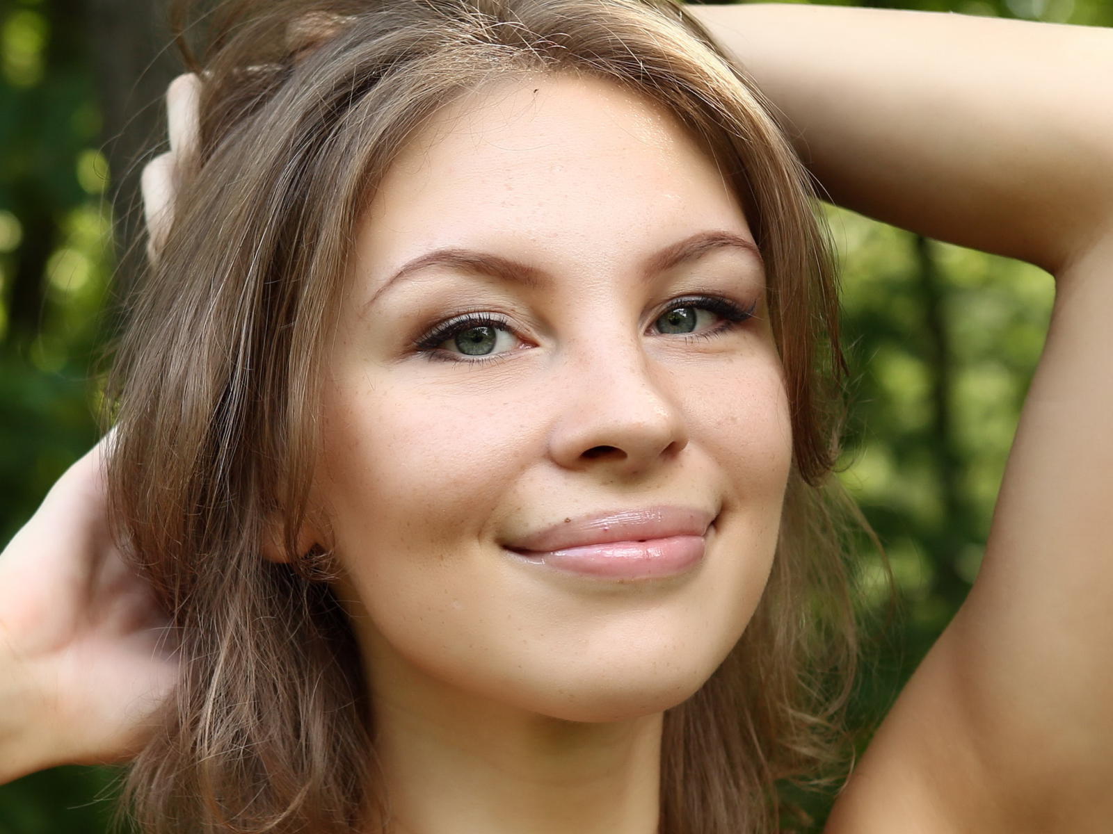 galina a, cecelia, nude in nature, beautiful, brunette, smile