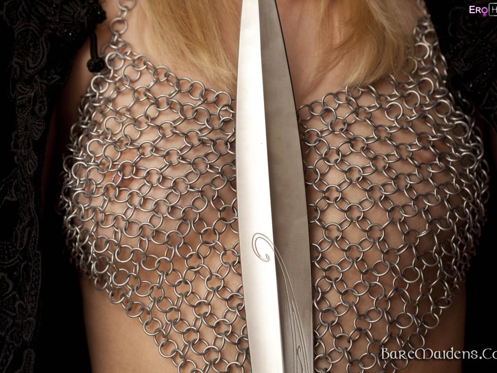 gadriella, blonde, baremaidens, tits, chainmail, see through, sword