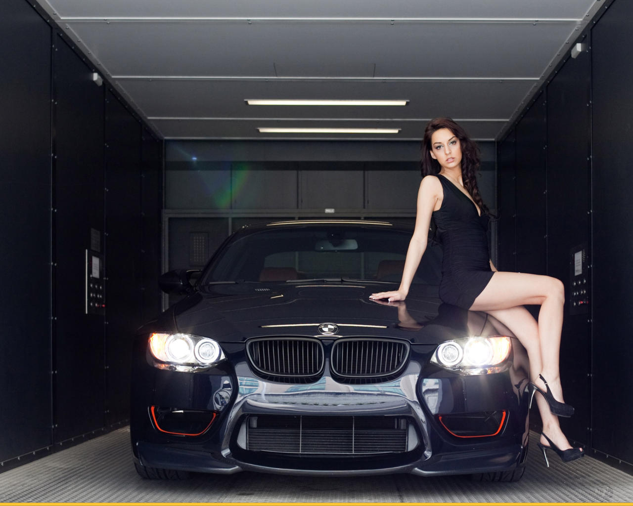 bmw, brunette, black, dress, legs, high heels, sexy legs, mini dress, harmonous legs