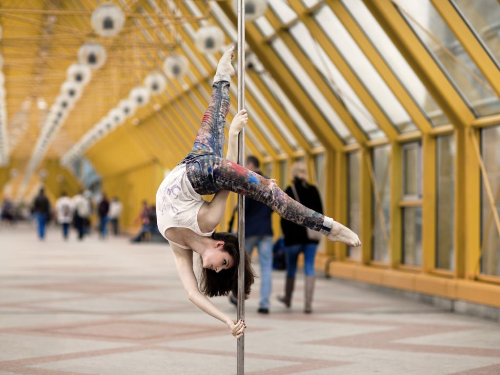 ← Go back: black haired, public, pole,...