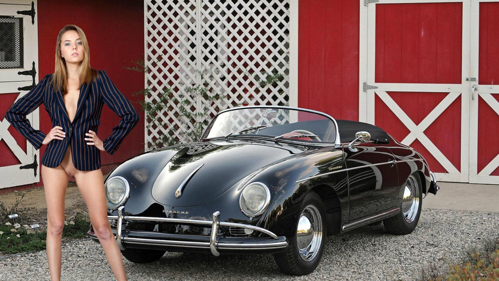 katya clover, clover, mango, caramel, mango a, brunette, car, jacket, bottomless, shaved pussy, labia, hi-q, 1956 porsche
