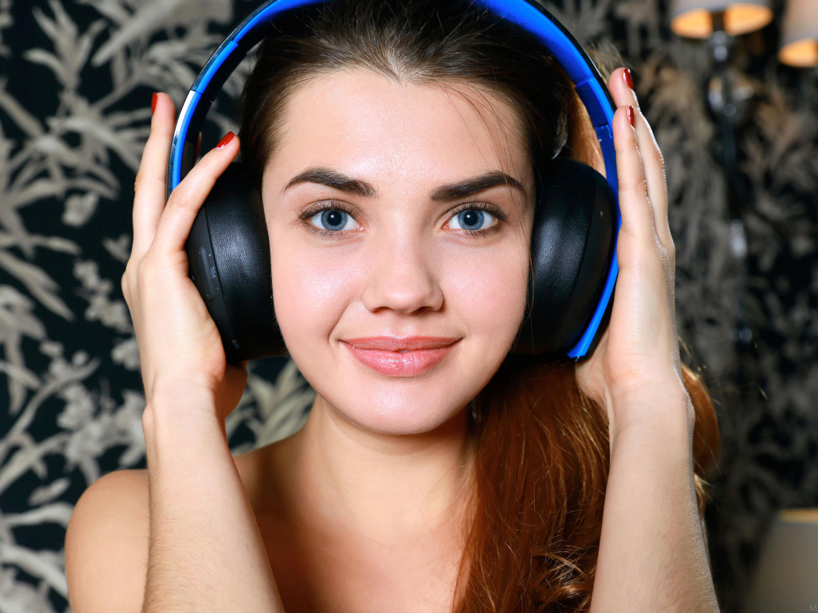 georgia, viva, model, brunette, russian, blue eyes, smile, sweet, sensual lips, headphones, face, polina kadynskaya, susza k