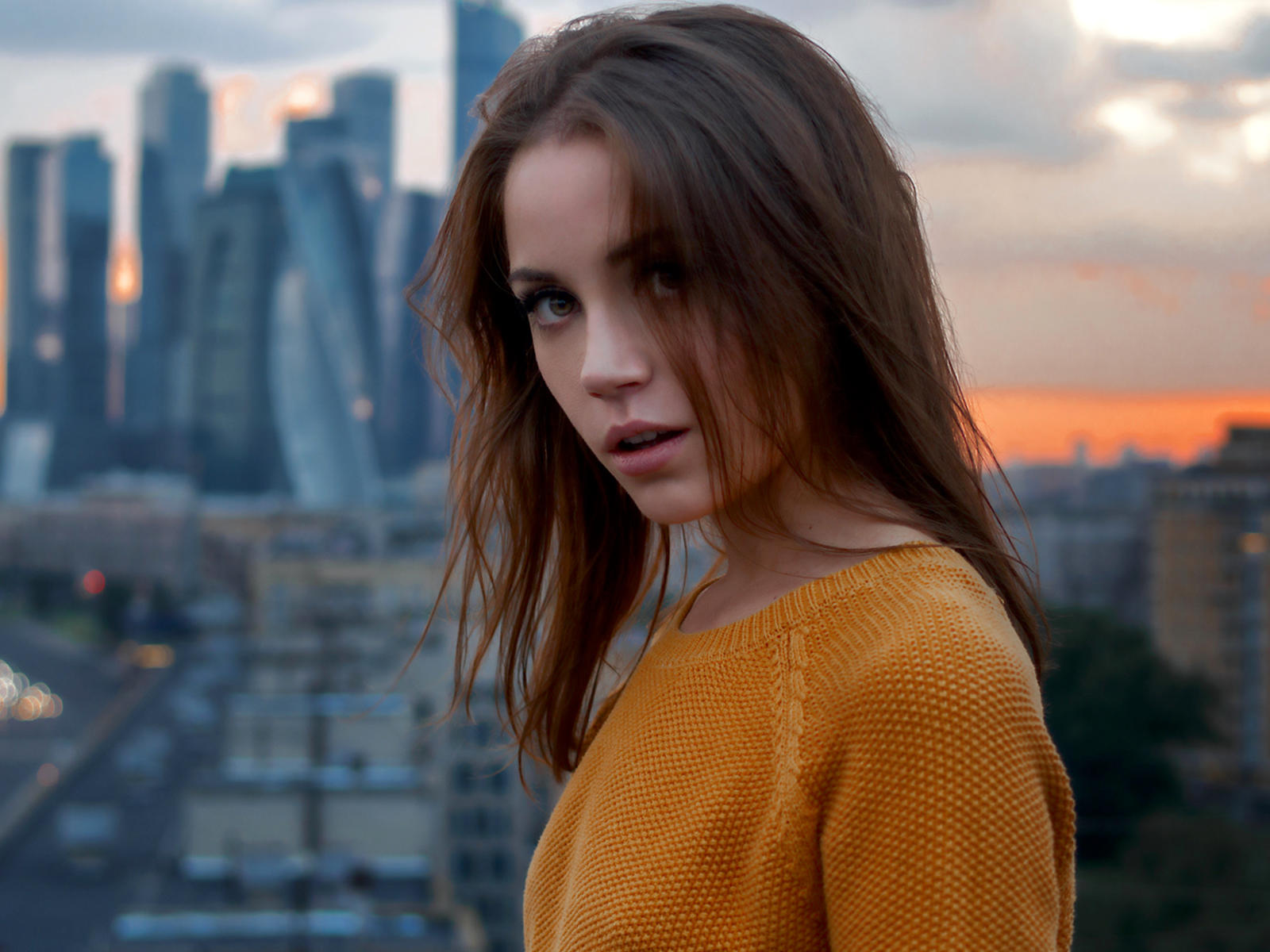 ksenia kokoreva, model, brunette, pretty, russian, sensual lips, sweater, face, moscow, 4k, uhd