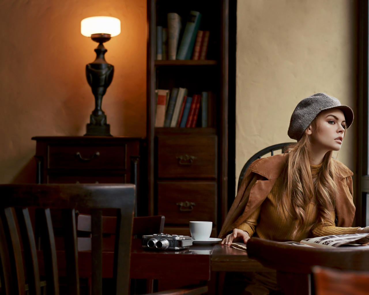 anastasia scheglova, model, pretty, russian, jacket, indoors, 4k, uhd, hat, lamp