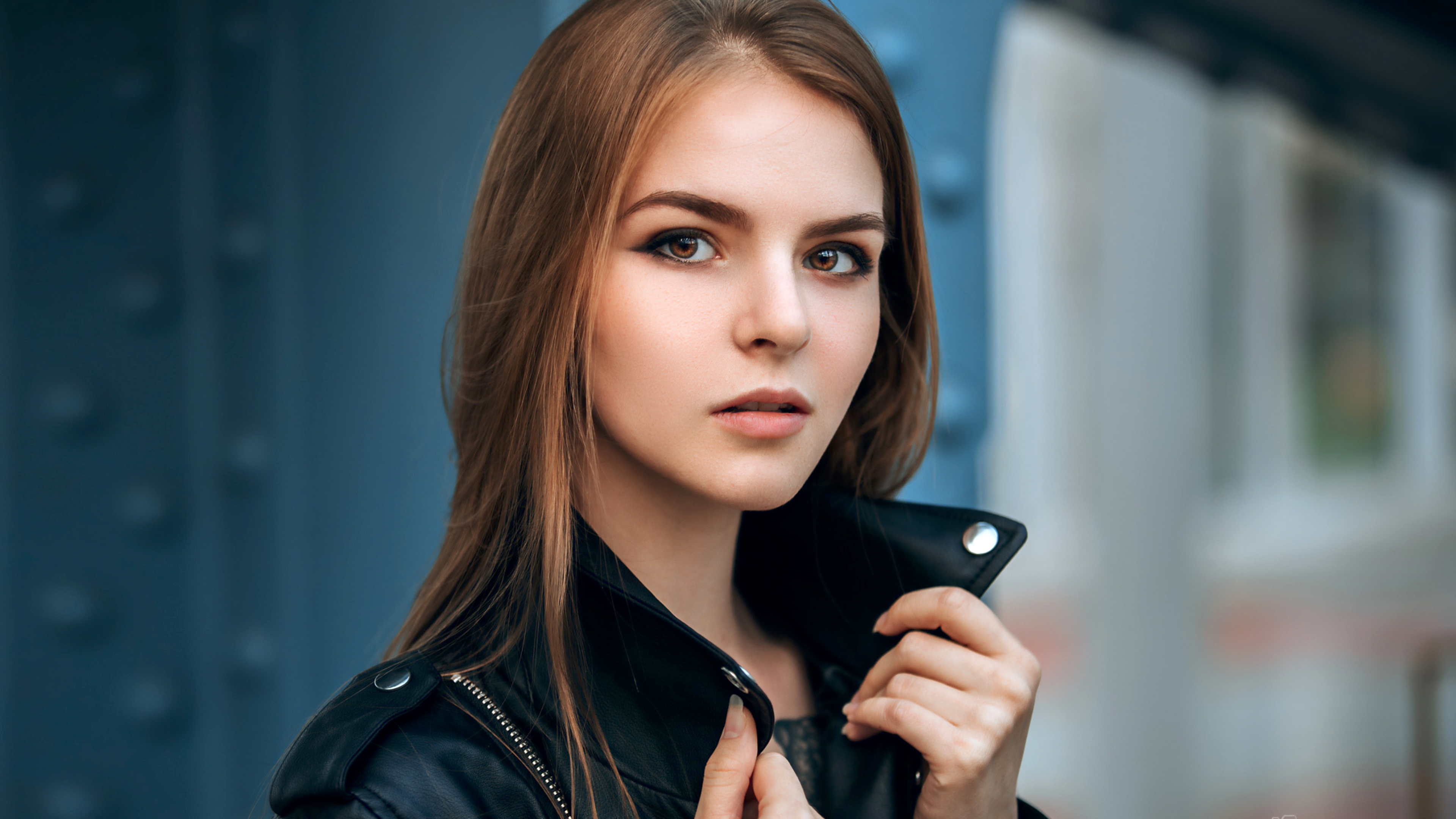 vasilisa sarovskaya, model, pretty, babe, brunette, russian, leather jacket, beautiful, face