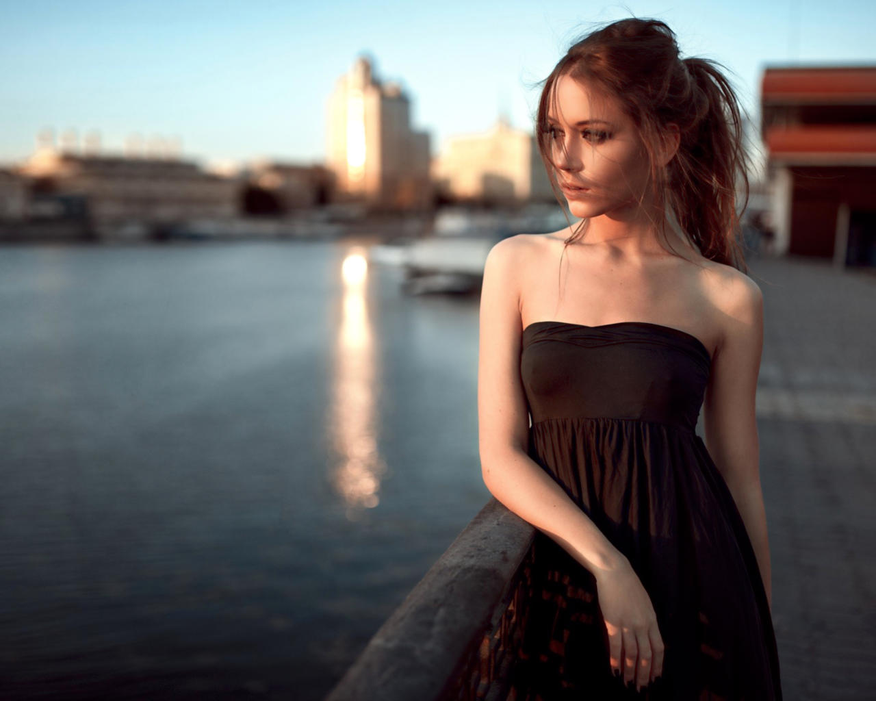 ksenia kokoreva, model, pretty, babe, brunette, russian, dress, river, depth of field, moscow, 4k, uhd