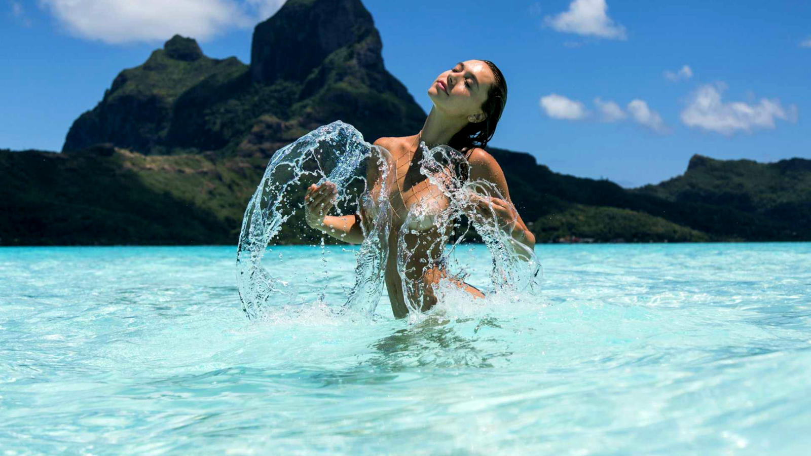 alexis ren, kim akrich 2017, final fantasy xv, sexy girl, sexy brunette, sexy ftopx girl, perfect tits, tanned, sea, tropics, ocean, nude, strategic covering