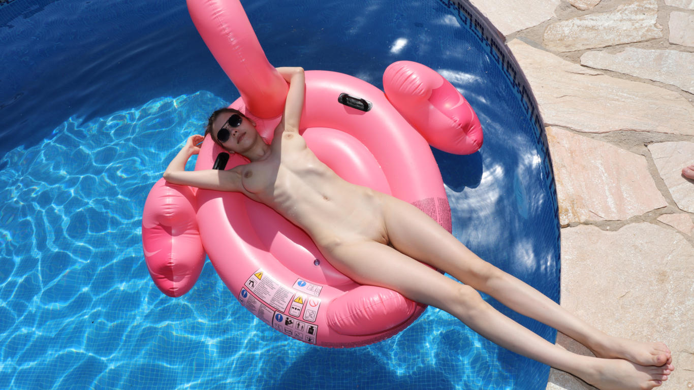 mila azul, mila, milla, milla d, milla azul, brunette, pool, flamingo, naked, wet, big tits, nipples, shaved pussy, sunglasses, ultra hi-q, long legs, ribs