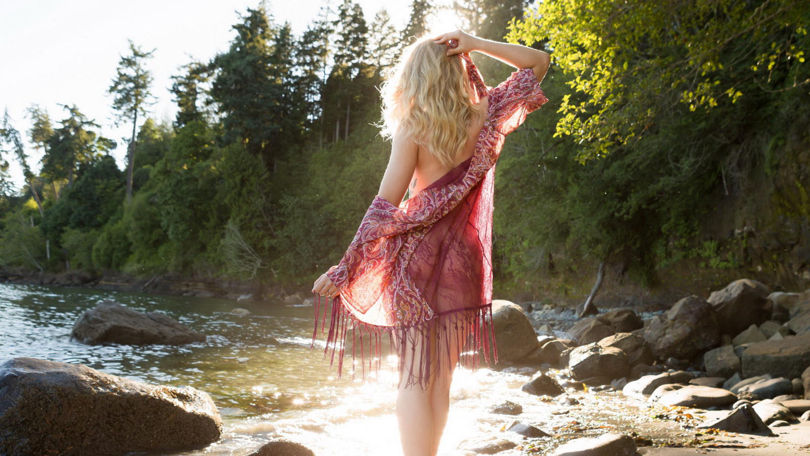 maya rae, swimsuit, blonde, lake
