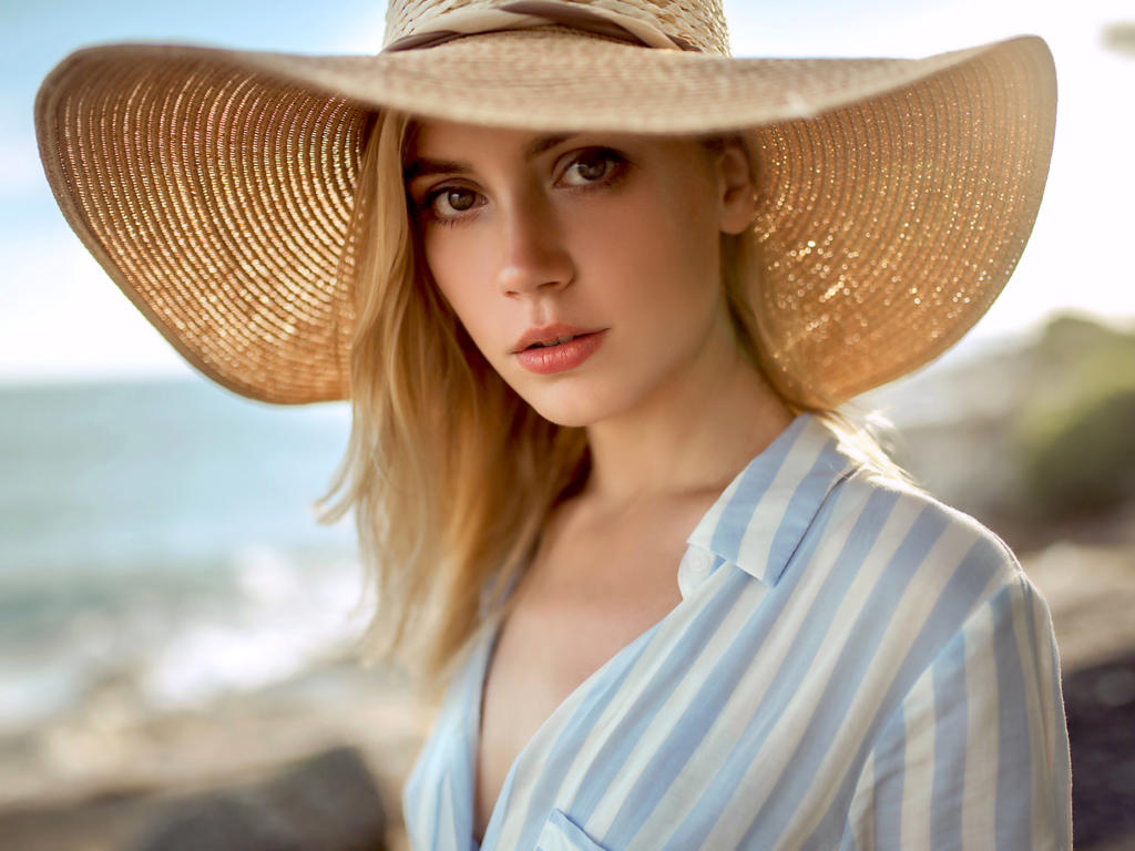 ksenia kokoreva, model, pretty, babe, blonde, sensual lips, russian, hat, 4k, depth of field