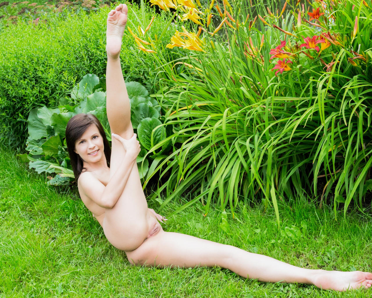 zelda b, zelda, arina b, naked, sexy, hi-q, shaved pussy, pussy, model, hot, smile, legs, brunette, all natural, boobs, tits, breast, cute, spreading legs, hands, outdoors, grass