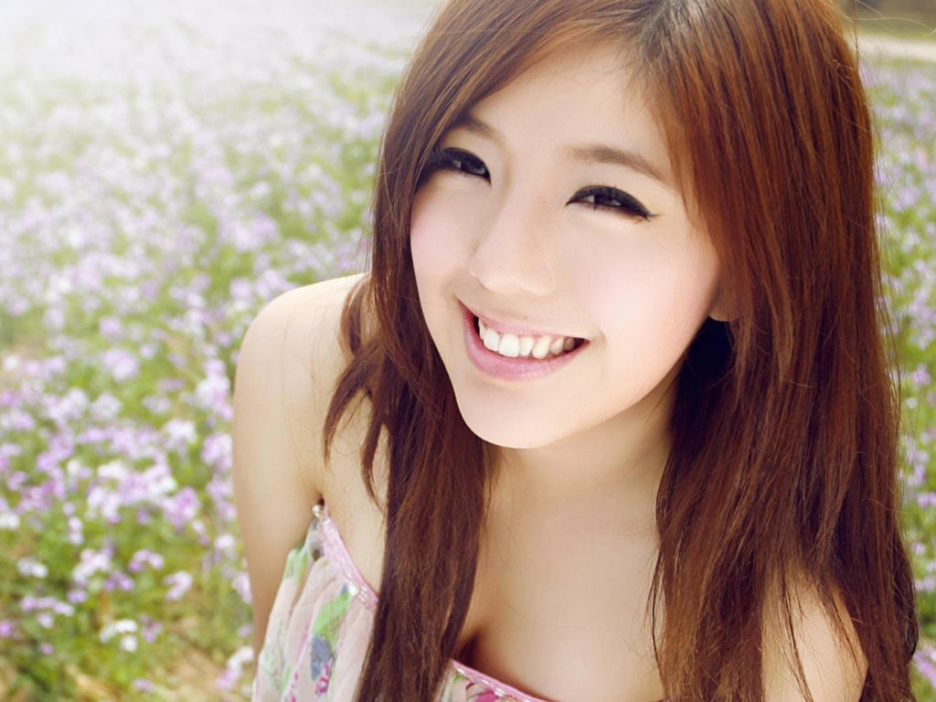 young girl, model, brunette, posing, outside, smile, flowers, asian, zhao yihuan
