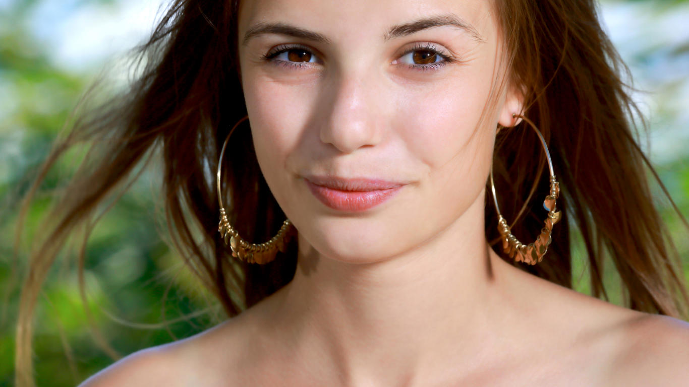 elle tan, elle, model, brunette, long hair, pretty, babe, smile, sweet, earrings, sensual lips, face, 4k