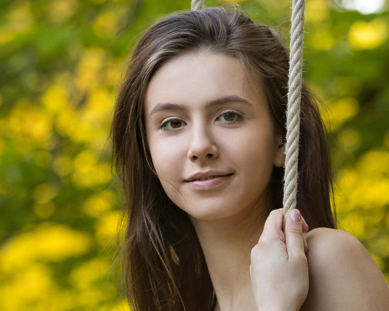alisa i, swing, brunette, cute face, forest, smile, alisa amore, jessica albanka