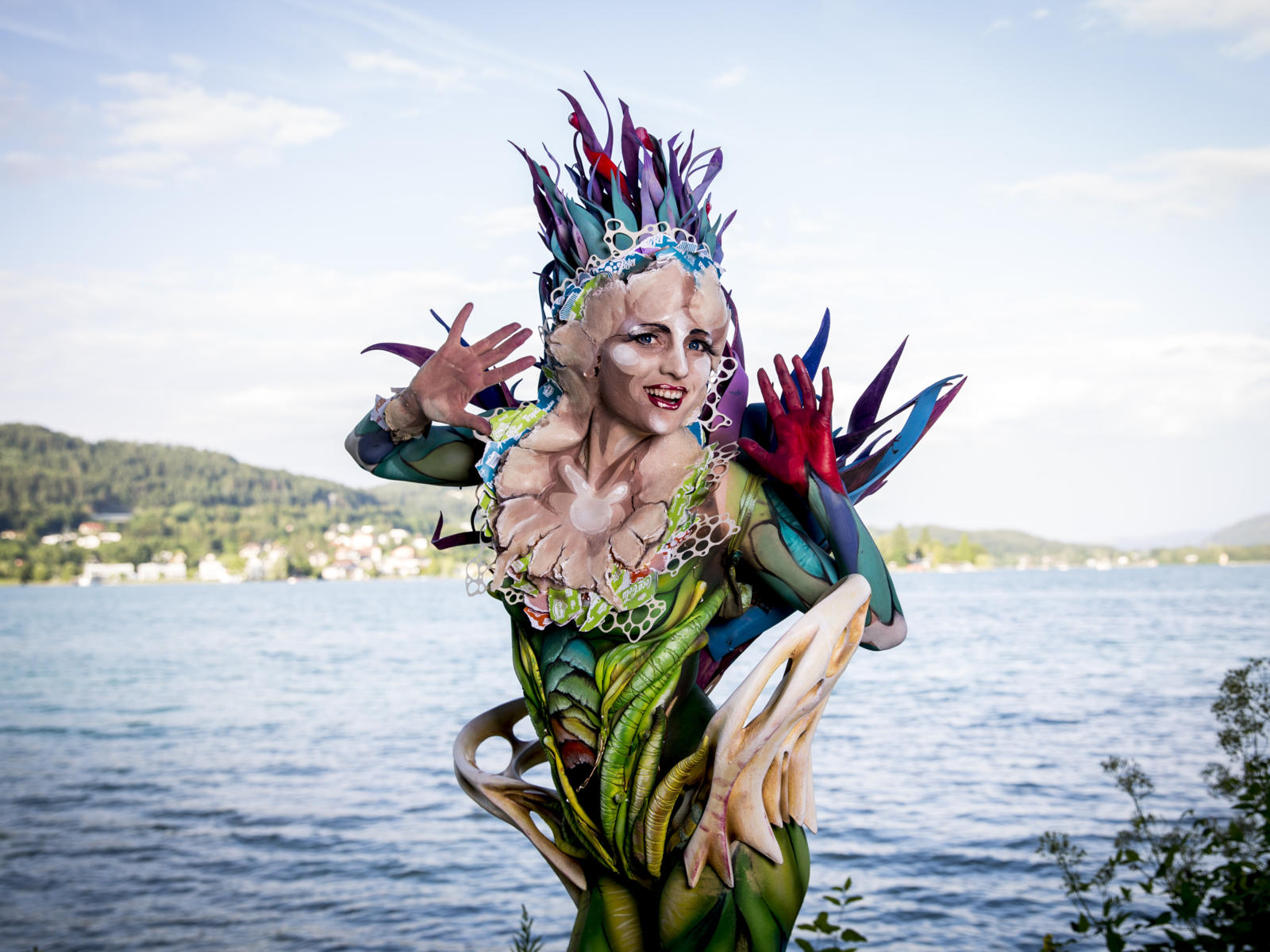 ← Go back: blonde, body paint, lake, l...