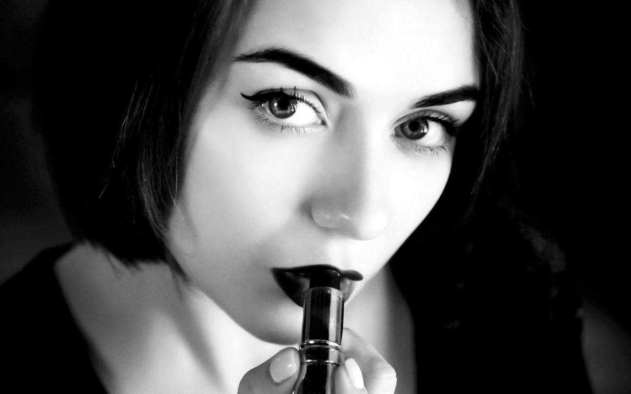 alice shea, akari y, kateryna g, natalie d, katy g, model, pretty, dark hair, sensual lips, lipstick, face, portrait, monochrome, black and white, oral fixation