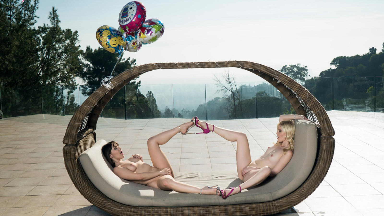 charlotte stokely, jenna sativa, lesbian, 2 girls, spreading, pussy, heels, masturbating, spreading legs, nude, tits