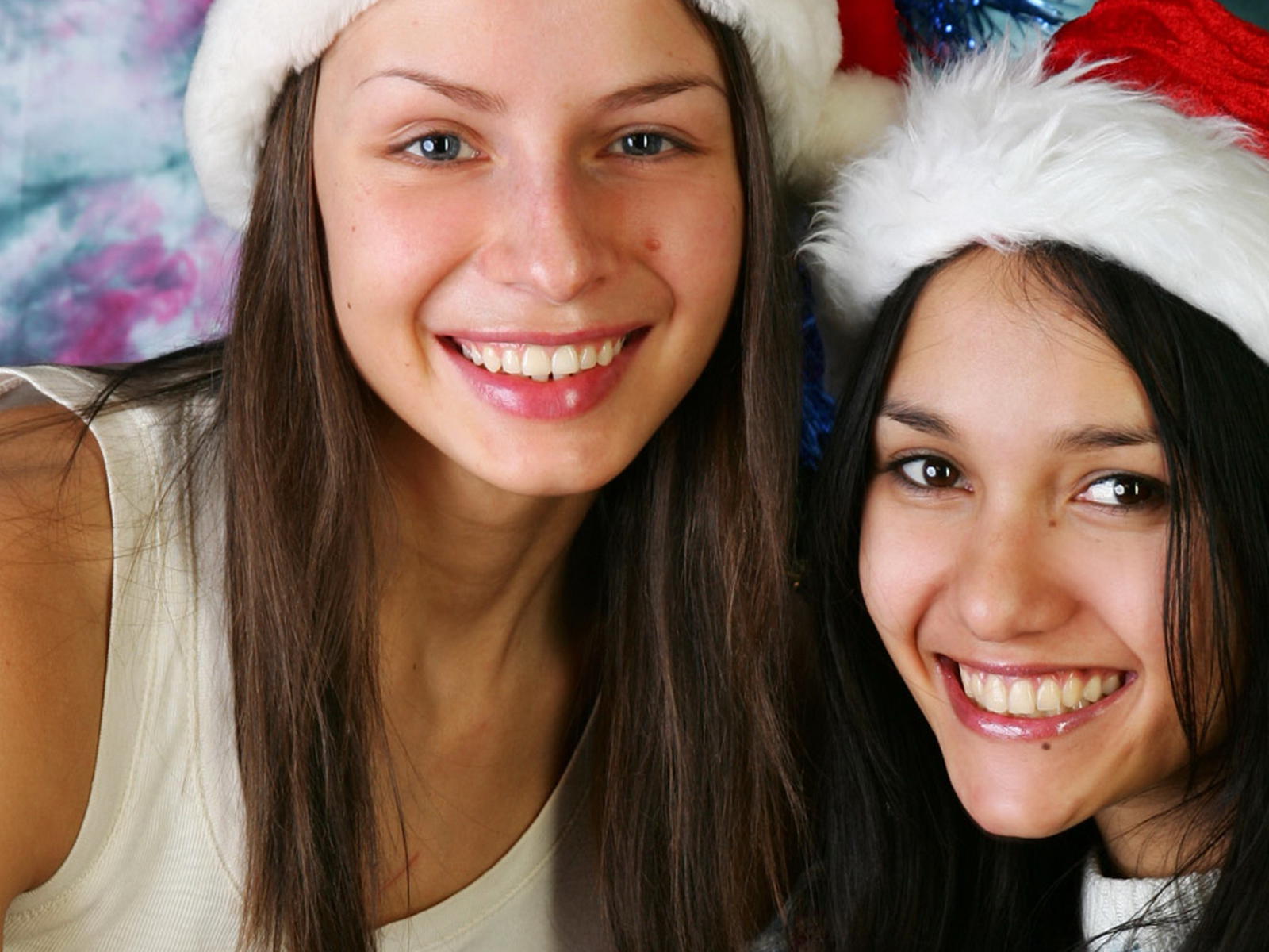 vika, kamilla, brunette, 2 girls, christmas, smile, face
