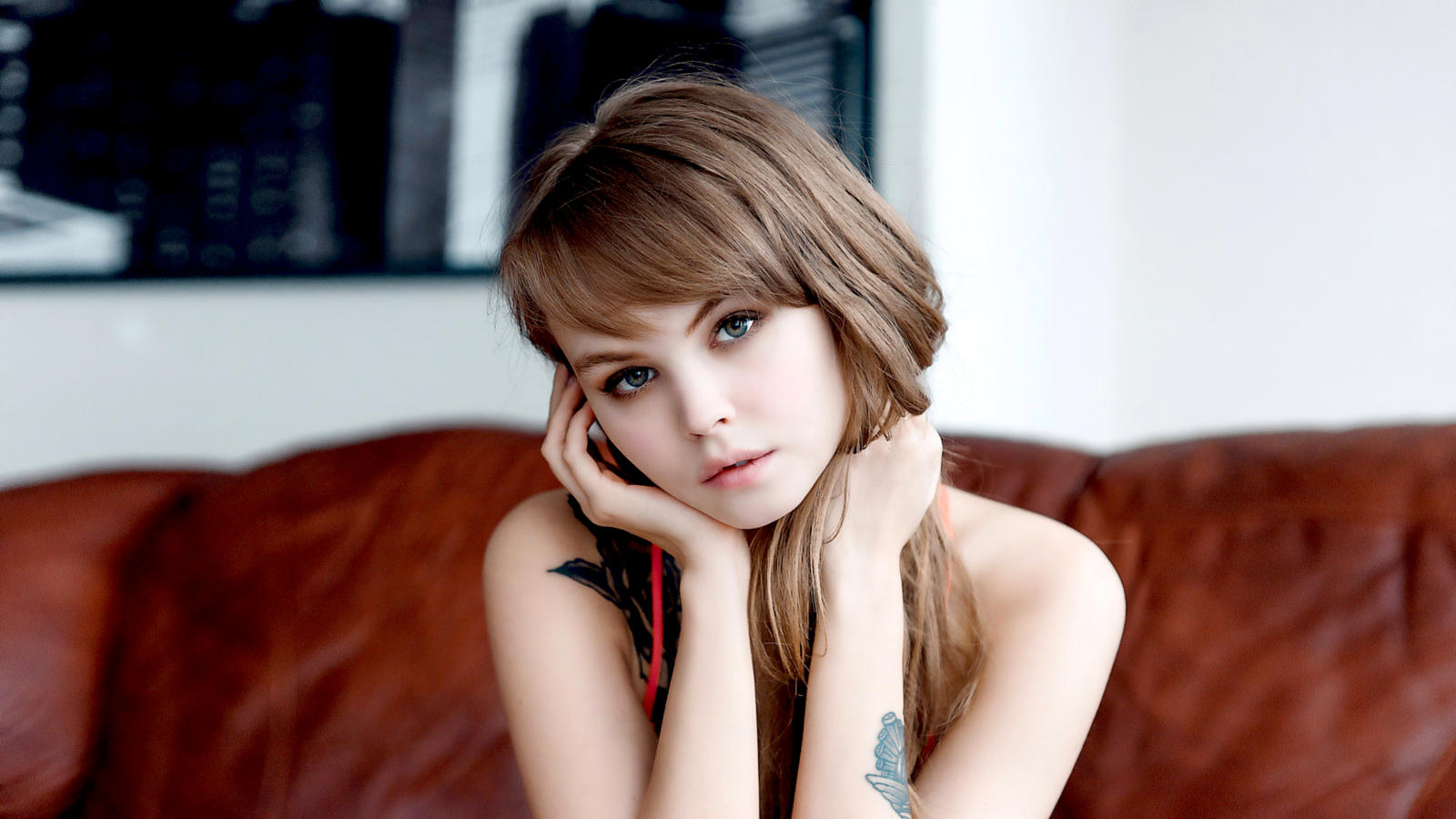 anastasia scheglova, model, pretty, russian, blonde, blue eyes, sensual lips, tattoo, face, soft focus, portrait