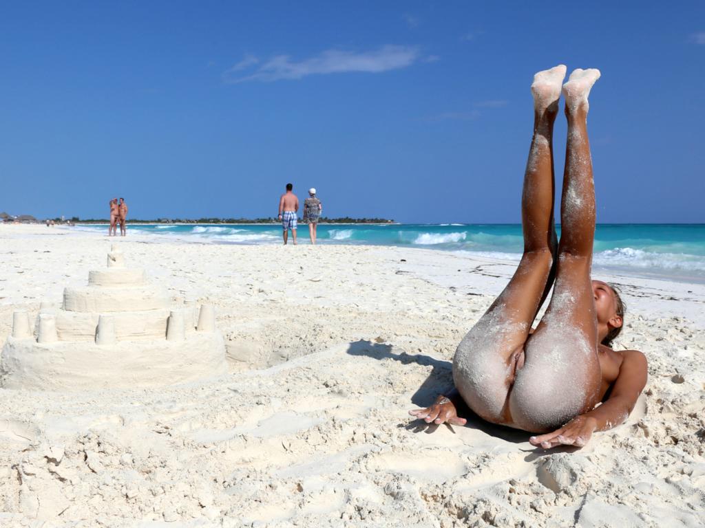 katya clover, clover, mango, caramel, mango a, beach, tanned, naked, pussy, labia, ass, anus, legs up, sandy, boobs, tits, nipples, smile, hi-q, sand