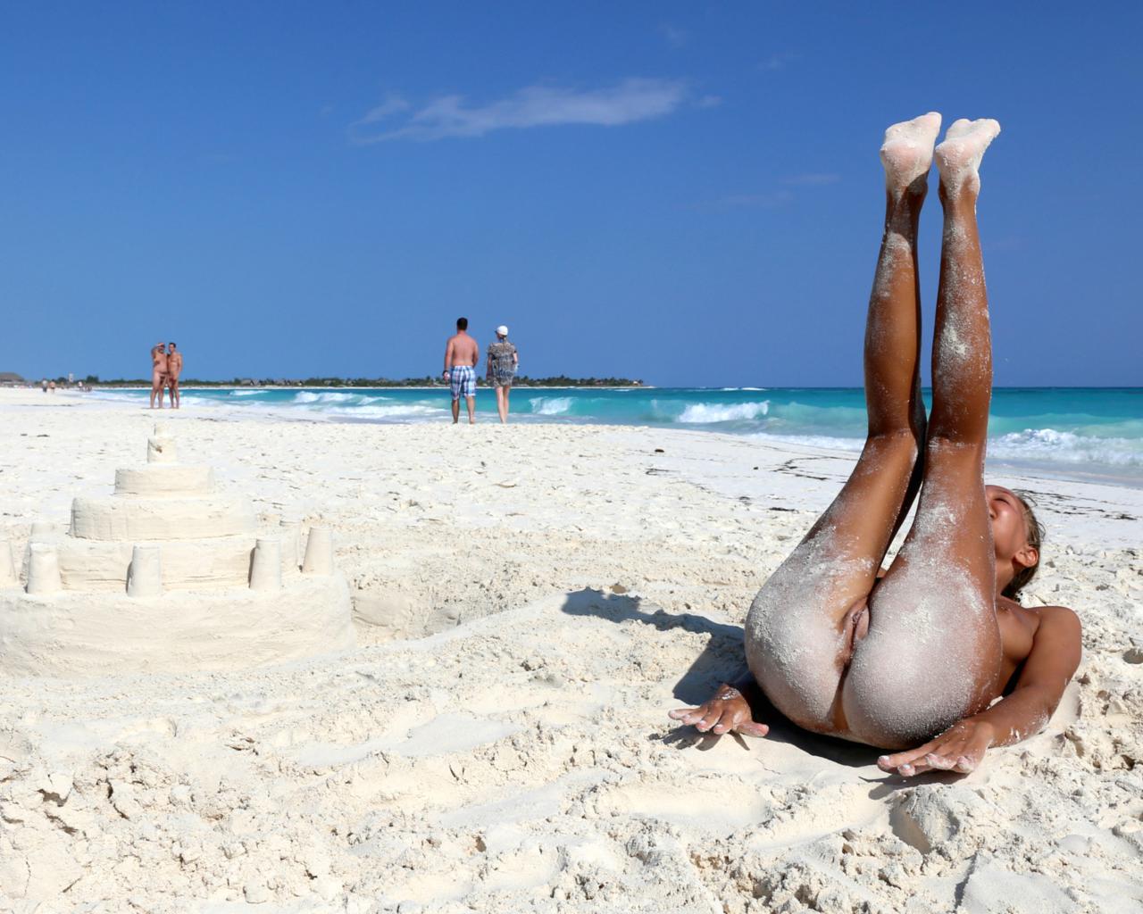 katya clover, clover, mango, caramel, mango a, beach, tanned, naked, pussy, labia, ass, anus, legs up, sandy, boobs, tits, nipples, smile, hi-q, sand