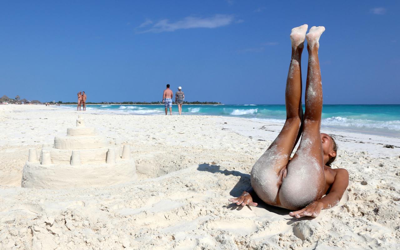 katya clover, clover, mango, caramel, mango a, beach, tanned, naked, pussy, labia, ass, anus, legs up, sandy, boobs, tits, nipples, smile, hi-q, sand