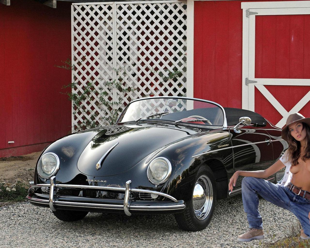 katya clover, clover, mango, caramel, brunette, car, porsche, topless, boobs, tits, nipples, jeans, running shoes, hat, hi-q, mango a, porsche 356